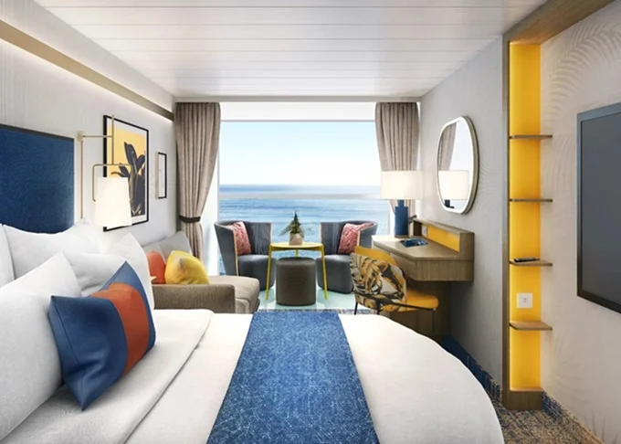 VP - Panoramic Suite 34-41 m². Veľké panoramatické neotvárateľné okno s výhľadom na more. 16,17. paluba vpredu. Max 4 osoby. Výhody Royal Suite Sky class. 9 541 € 9 541 € za osobu