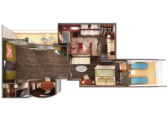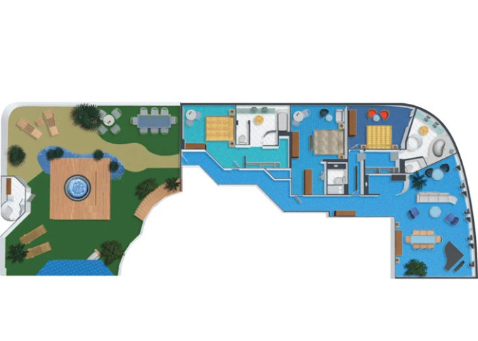 | S1 - Garden Villa - 3 spálne 621 m² / balkón 414 m². Vírivka. 14. paluba - stred. Max 7 osôb. Výhody Suite. | 22 378 € 11 189 € za osobu | ||