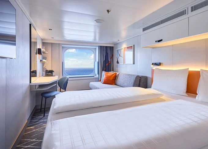 | AUCO - Kajuta s oknom kat. C 17 m². Neotvárateľné okno. 3. paluba. Max 4 osoby. | 2 498 € 1 249 € za osobu |